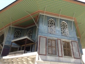 As we were rushing through our visit I wondered if this palace also had a harem and sure enough, it does. Harem means protection and it is a separate section for the women. The most clever and beautiful girls are chosen. Often they were slaves purchased at an early age of nine or ten. They would be educated for seven years. The girls not chosen by the Sultan as a “partner” are married to other high officials. They were given dowries, jewelry, and a salary they could take with them.
