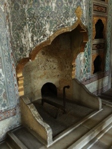 This palace was fascinating in a couple of ways: The multi-faceted mirrors above the fireplaces are angled to provide more heat into the room, good thing, these are huge rooms. An even bigger surprise was that the Sultan’s apartment has a squat toilet!