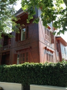We took a historical walk around the city comparing older Ottoman style buildings with those from the 19th and 20th century. The Ottoman style encorporated upper story windows that extended outward from the building to catch the breeze. The earliest buildings were built of wood and there is a tall stone firetower because fire was a major threat. Public buildings are created of marble, cement, and such but still have some of the same architectural features, the later ones encorporating elements from the west. As we walked, there were many narrow, twisty, two-way, one lane streets. People walk down these streets and then move to the sidewalk when a car comes along. We ran into a film crew as they were filming down one of these quaint streets.