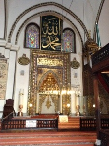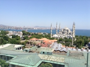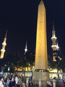Tonight’s dinner was eaten at a restaurant with a large terrace overlooking the city. They were set up for an engagement party and couples started coming in to join the party. Because it is Ramadan (Ramazan in Turkey) they couldn’t eat or drink anything until sundown. I felt very guilty as they sat there patiently waiting to eat while we gorged ourselves. Then a cannon went off and they were able to drink some water. The prayer call sounded, and afterwards they started to eat. Imagine making this kind of a sacrifice during the longest days of the year.